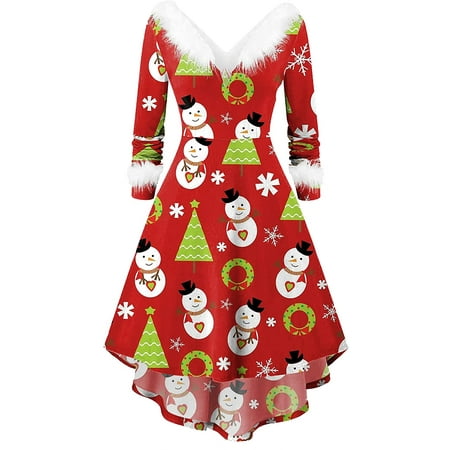 Christmas Dresses For Women Christmas Print V Neck Long Sleeve Swing Flowy Knee Length Bodycon Dress For Winter Xmas Party Walmart Canada